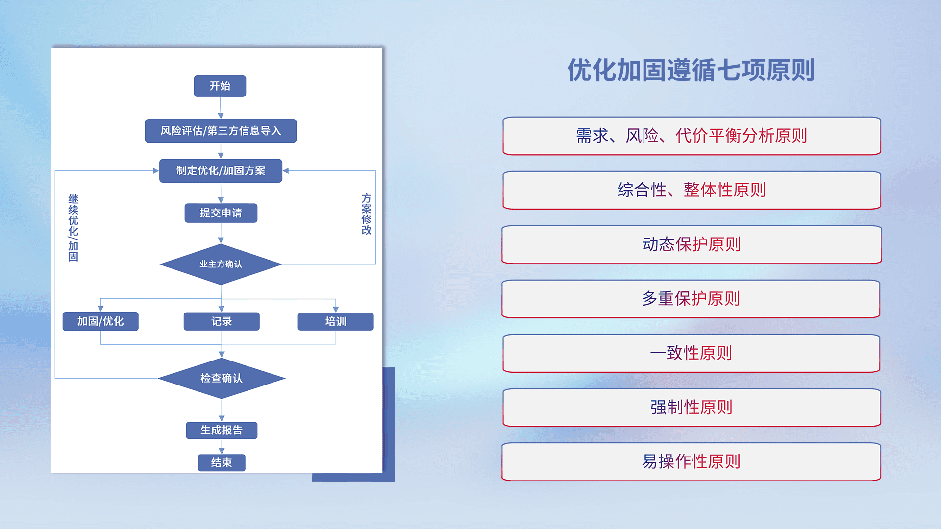 最大程度利用现有资产,,,对评估发现的问题进行封堵与整改,,,,防止漏洞被利用,,,提升整体网络安全性,,,,为客户带来高标准的优化加固服务。。。